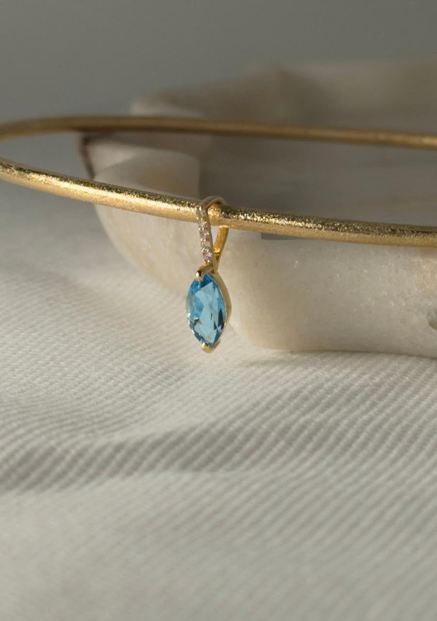 18k gold pendant with diamond , stone Blue topaz marquise