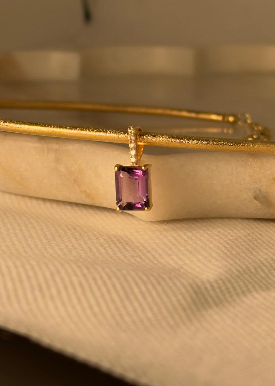 18k gold pendant with diamond , stone Amethyst